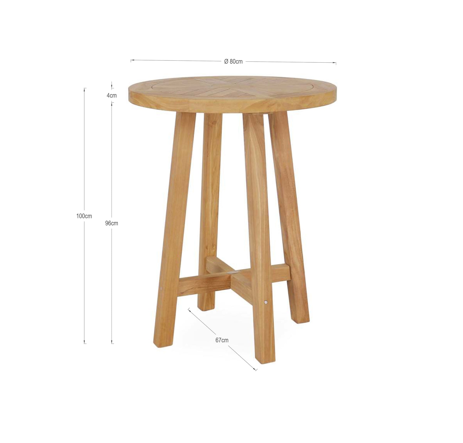 With an 80cm diameter and a standard bar height of 100cm, it offers ample space for drinks and snacks while providing a comfortable standing or perching spot for guests.